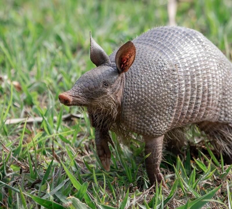 Armadillos are easy to sneak up on and can be caught by hand, some people eat them and say the meat is comparable to pork. They are one of the few animals that can carry leprosy and several other diseases that can be transferred to humans so if you see one it’s probably best not to touch one.